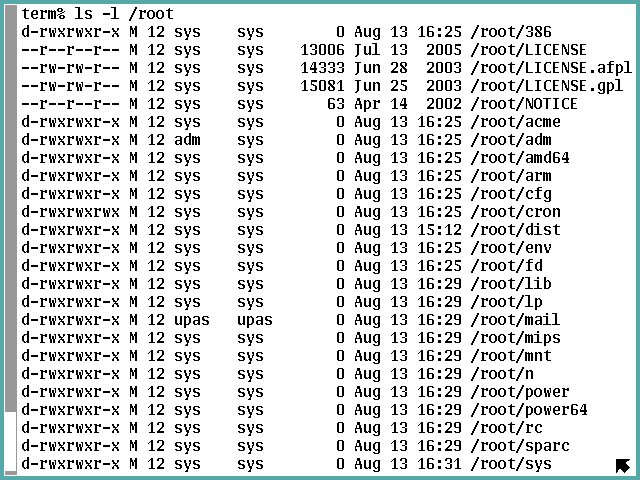 By the way, the world-writable permissions you may have noticed in the ls output are not the security hole you might immediately think. cam@9.SQUiSH.org also contributed this explanation: