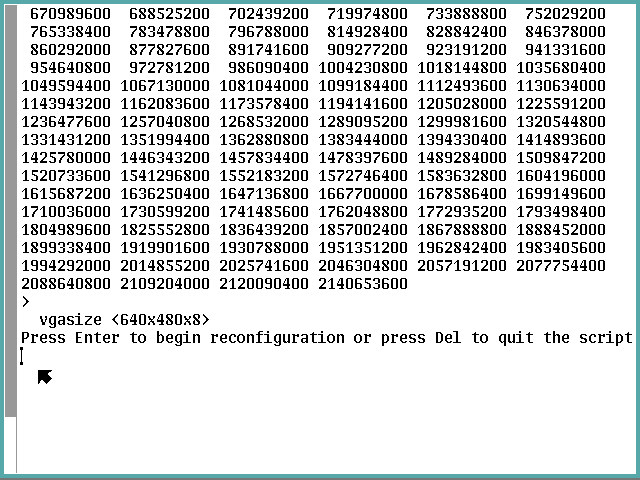 This is your last chance to prevent reconfiguration using this set of parameters, so look closely and be sure you are satisfied with the set. If you have not read past this point before you press the Enter key, don't press it yet! Read on first and be certain what the unmodified script will do is what is right for your project, and if it is not, press the Del key and edit the script so it will do what is needed instead.