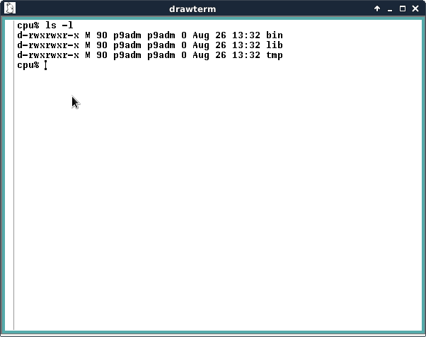 Here comes the acid test: accessing the server remotely. In the p9host user account under Sid, run the {drawterm -a p9host.home -c p9host.home -s p9host.home -u p9adm &} command substituting your particulars for mine: