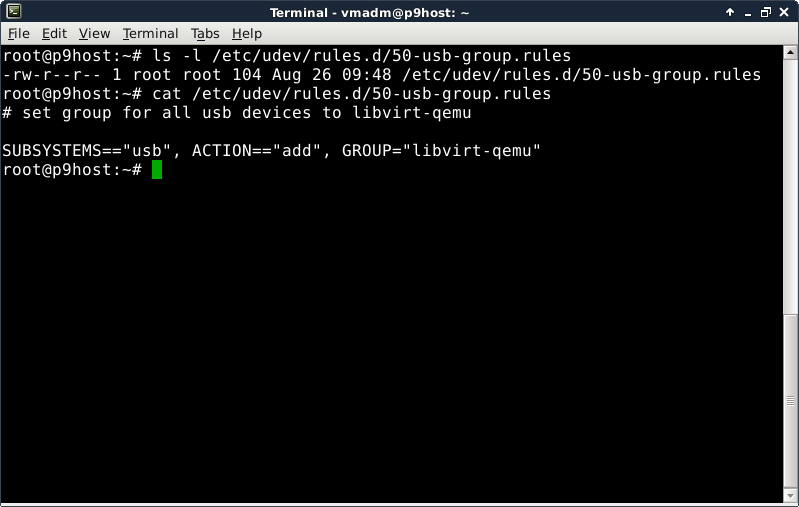 In order to attach a USB device to a virtual machine, the libvirt-qemu user needs to enjoy the same access to the device root does. The precise approach approach to use is up to you. What I did was add a rule to the p9host's udev configuration to associate any USB device with the libvirt-qemu group: