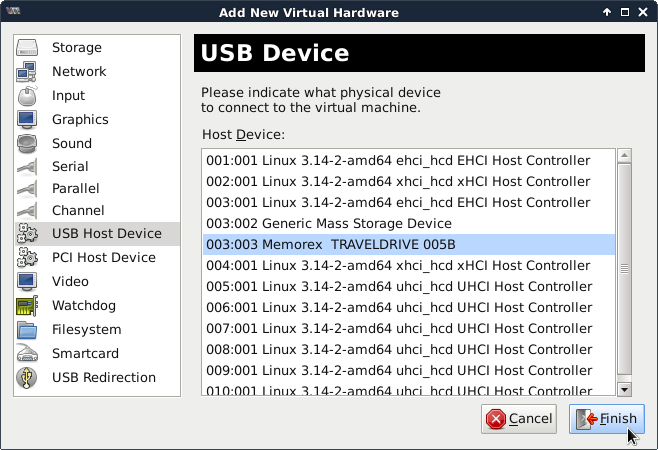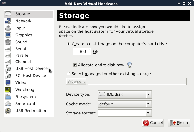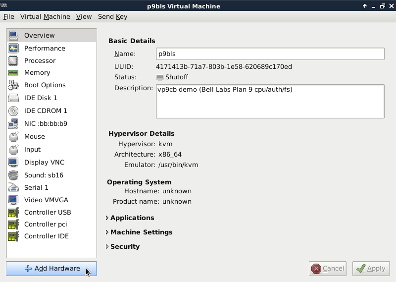 In the Overview panel, we left-click on the Add Hardware icon in the lower left corner: