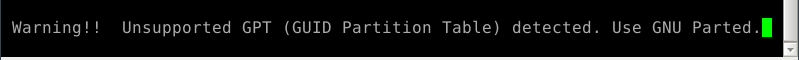 Oh, right—cfdisk doesn't support GPT disks. Pressing Enter does show some unformation about the disk: