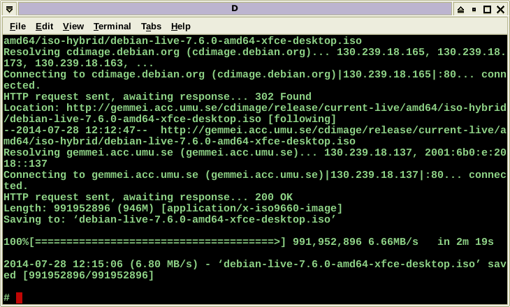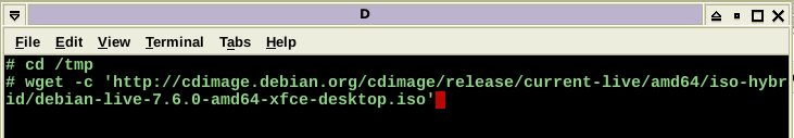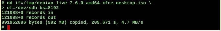 "dd if=/tmp/debian-live-7.6.0-amd64-xfce-desktop.iso of=/dev/sdh