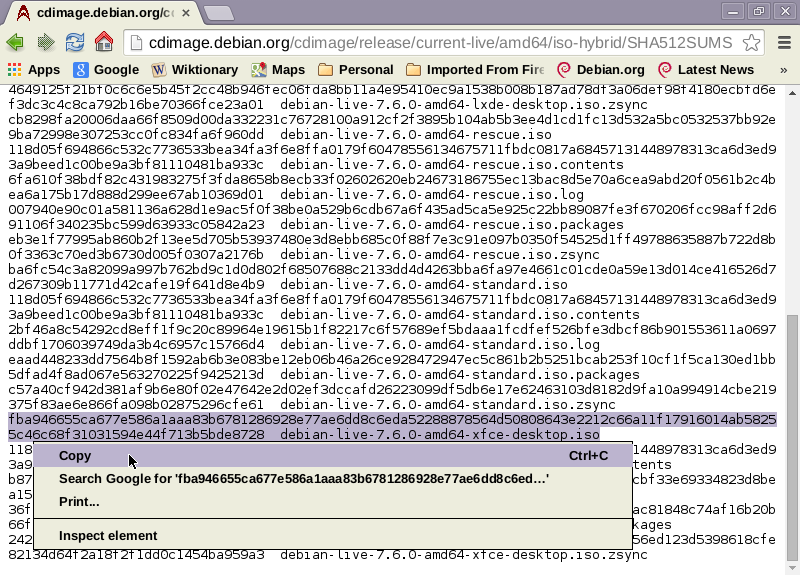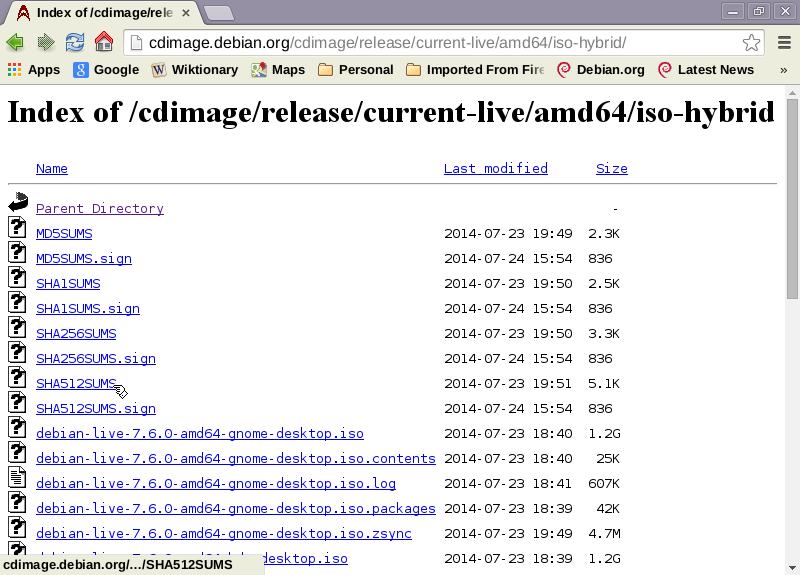 Scroll back up to the top and open the checksums file for the ISO image (SHA512SUMS for me)—it should look something like this before you click: