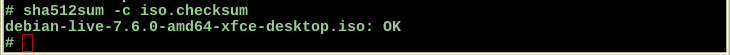 press Enter, then run the appropriate checksum command; e.g., "sha512sum -c iso.checksum"—make certain there were no anomalies: