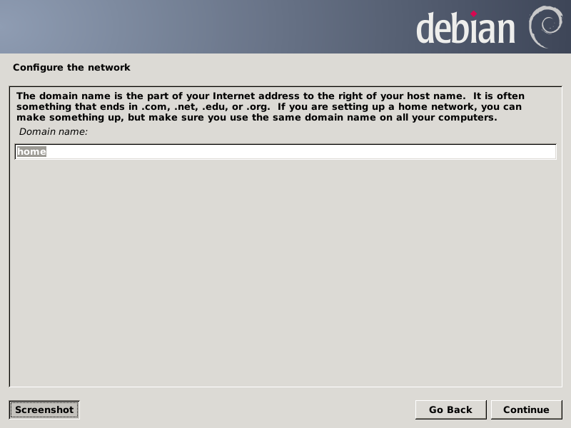 Then the installer will load files it needs from the USB-stick, followed probing the local network and setting that up for the install (so you can allow it to use DHCP for this phase of the project. Then it returns to asking you for more parameters: