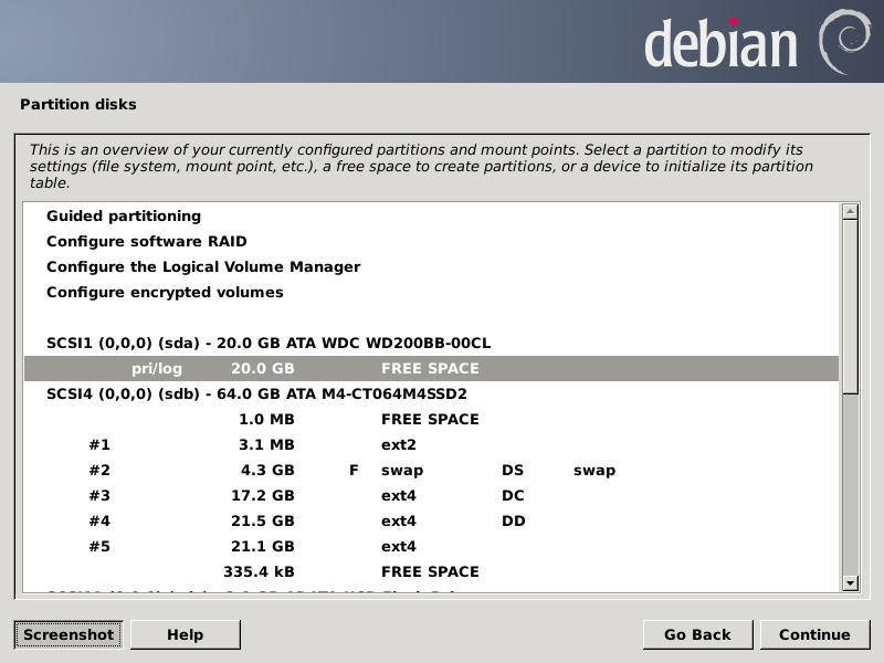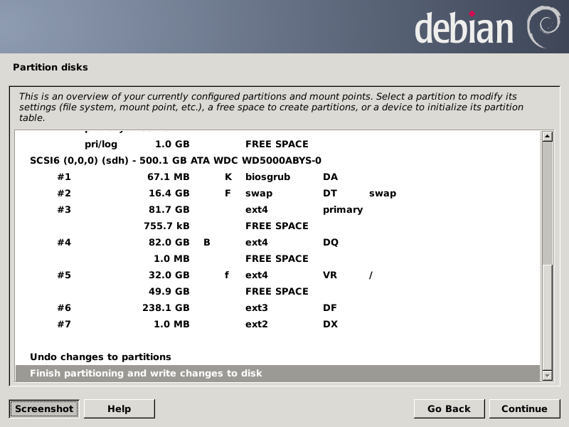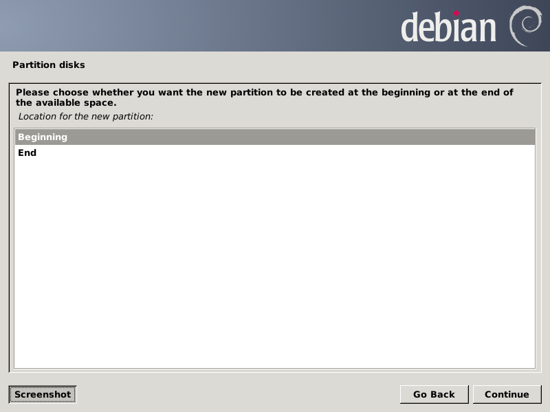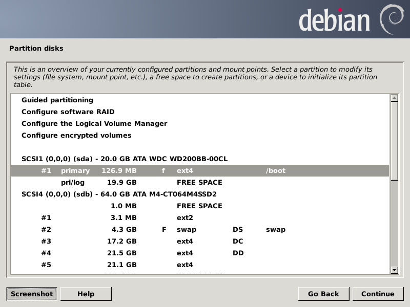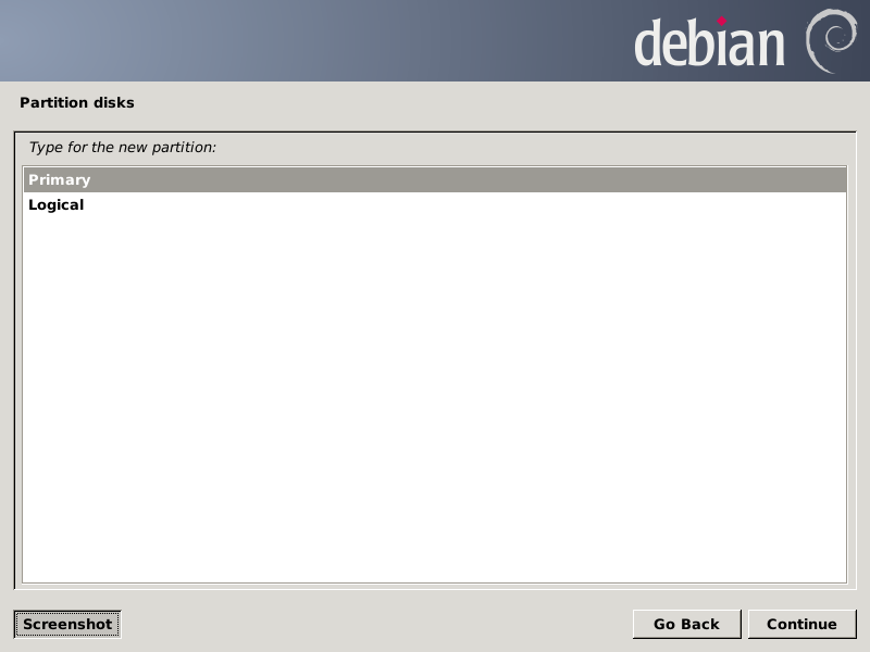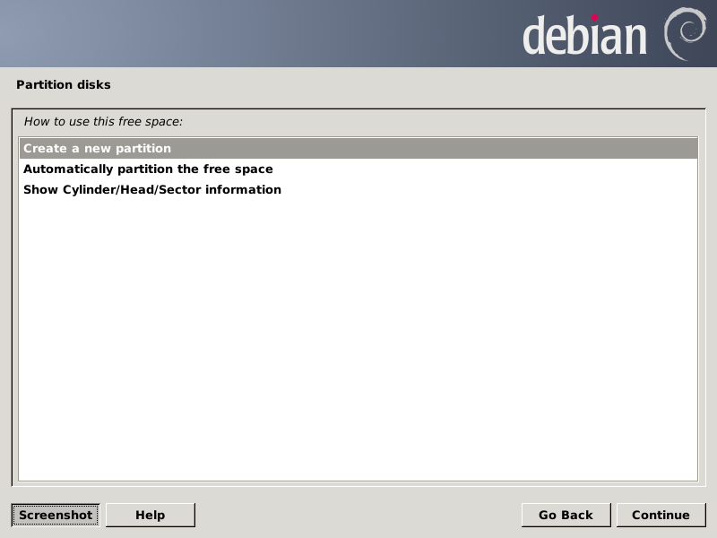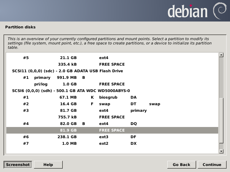 After pressing Continue, the partition chooser screen should look like this: