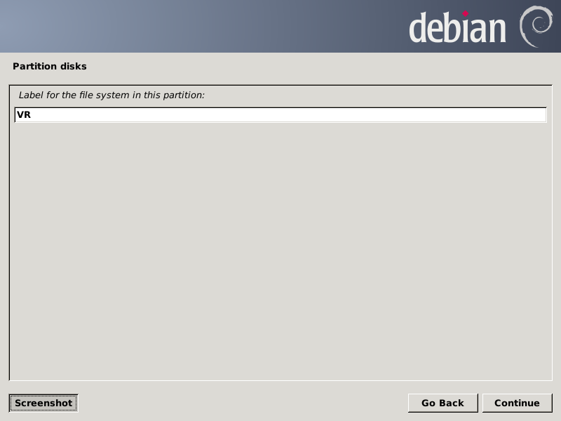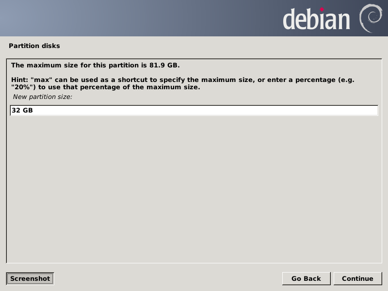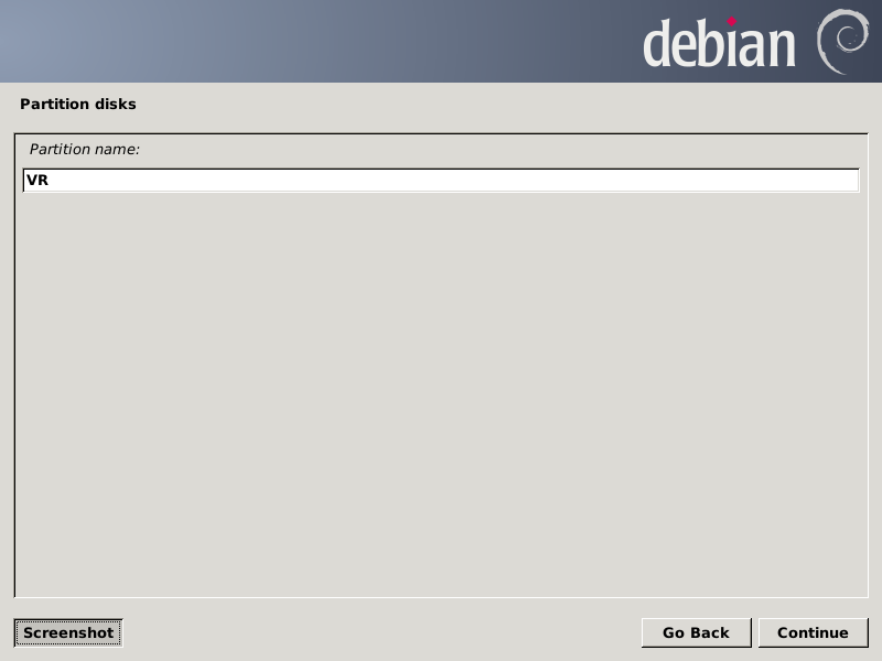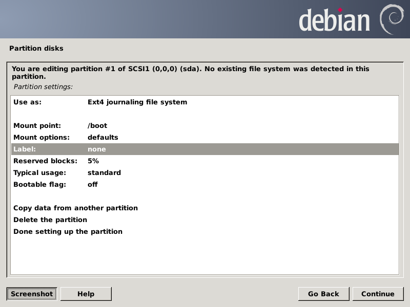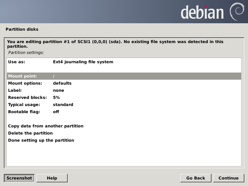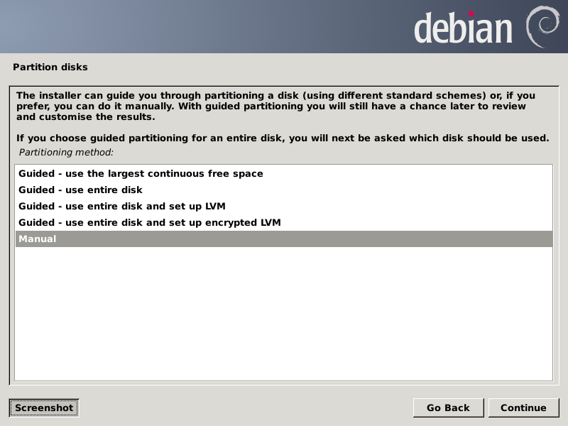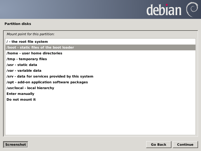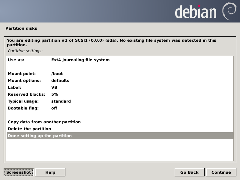 After pressing Continue, the partition chooser screen should look like this: