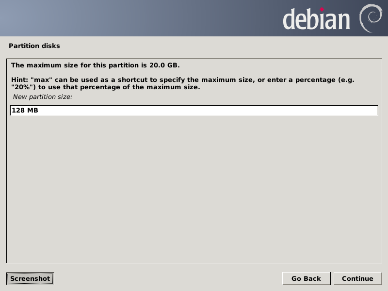 I will put a /boot partition of 128 MB at the beginning