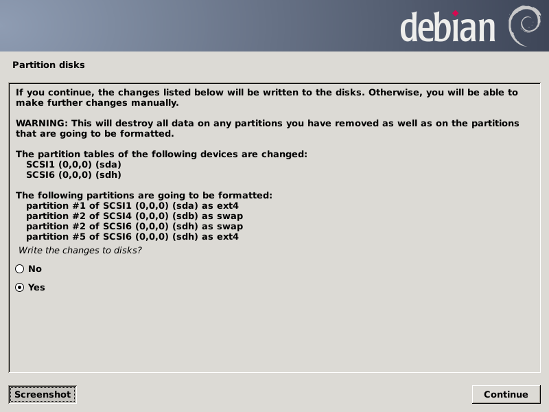 Here's the disk modifications plan. You must either punch the Yes radio button and Continue or Go Back: